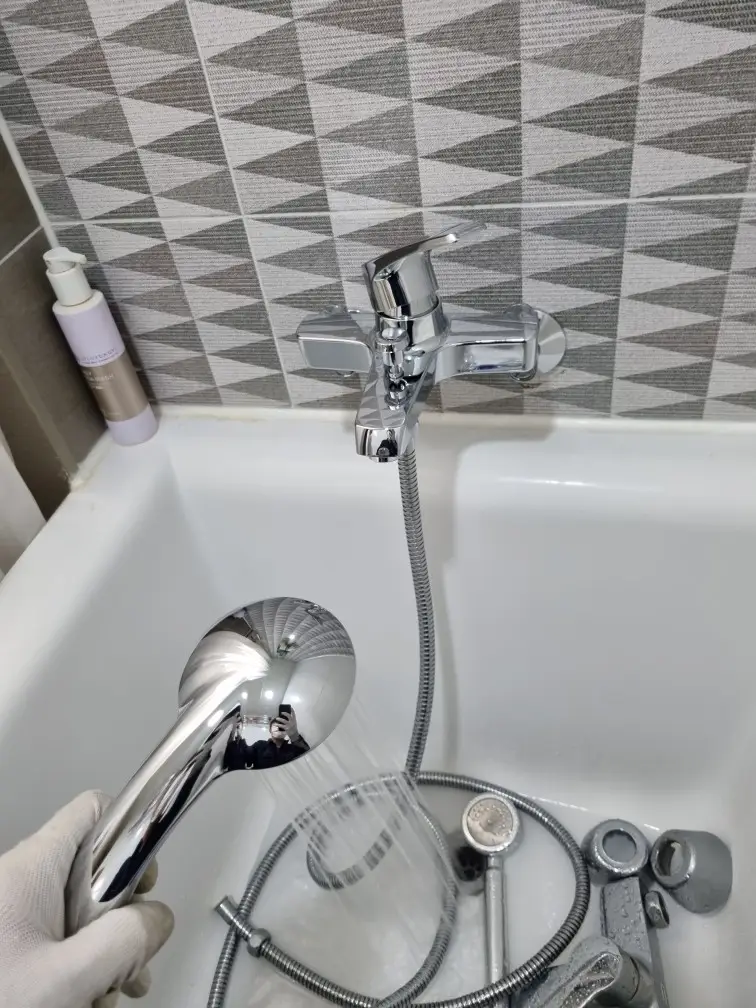 욕조 샤워기는 사용 횟수가 많아서 시간이 지나면 수압 저하, 물샘, 헤드 분사 불량 같은 문제가 생기기 쉽습니다. 헤드 연결부나 호스 연결부에서 물이 새기 시작하면 교체 시점을 검토해 보세요. 헤드만 바꿔도 해결되는 경우가 있지만, 호스나 수전 연결부까지 함께 점검해야 재발을 줄일 수 있습니다.